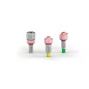 Exaconnect Plus gerade oder abgewinkelte Verbindung 3.0,GH transmukosale Höhe 1 - 3 - 5 , mit Einheilschraube montiert auf Positionierer für Leone Schraubprothese Serie 126-302.